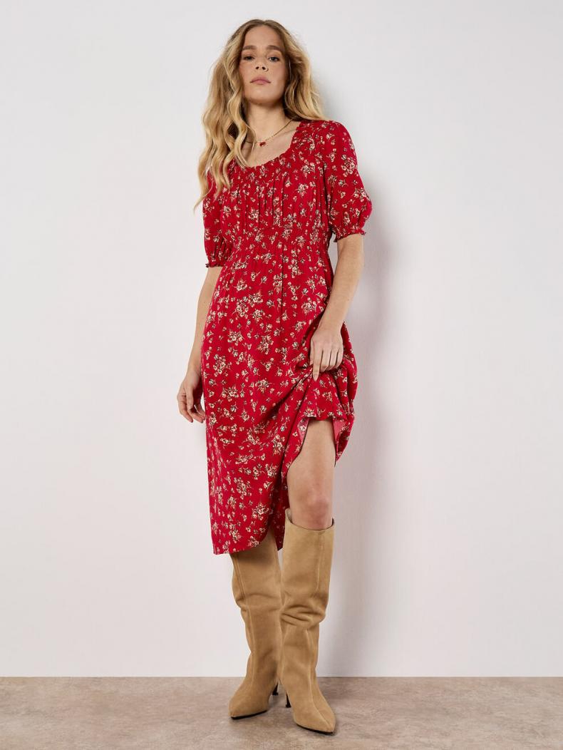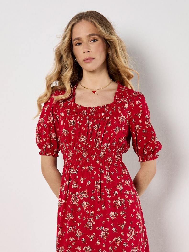 Lightweight and woven, this milkmaid dress boasts a ditsy floral print designed for warm days. Falling to a midi length, it features a square neck, puff sleeves, and a smocked waist for a flattering fit.Simply style with sandals to complete the look.
