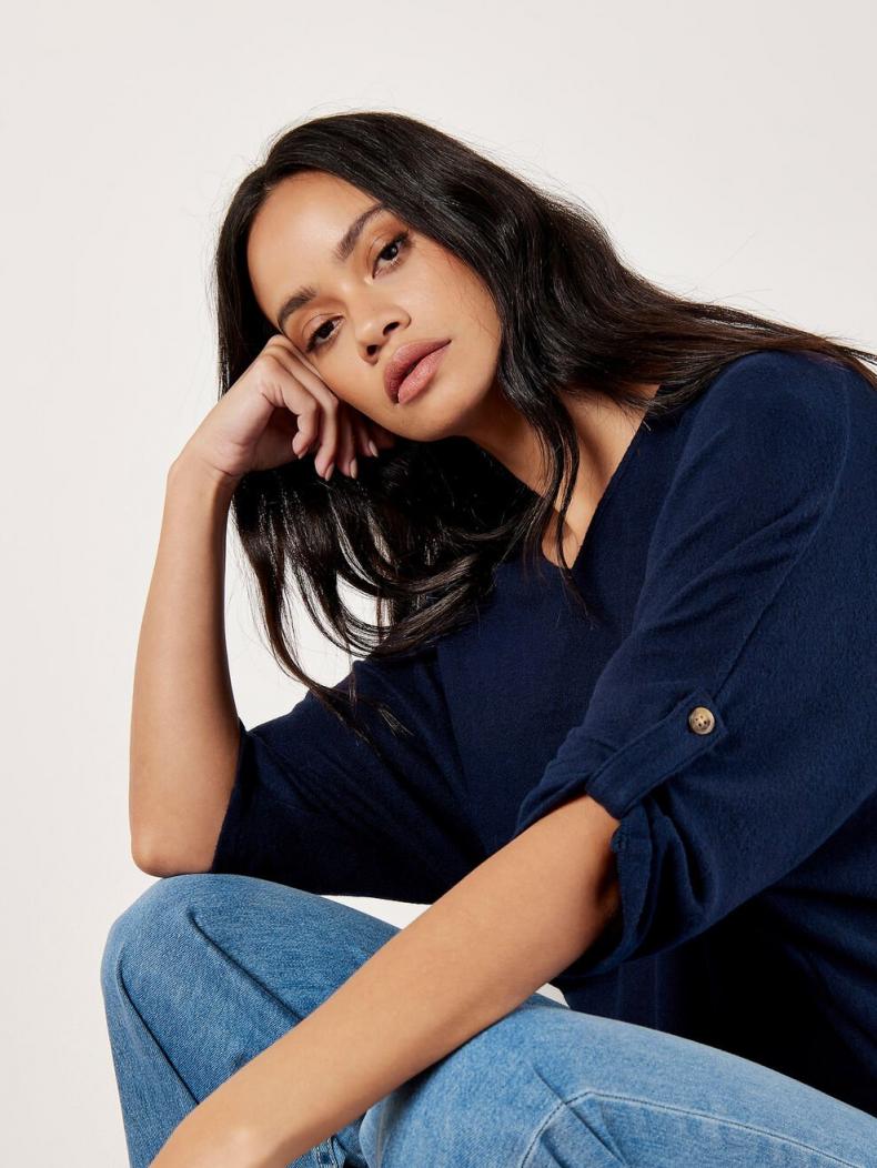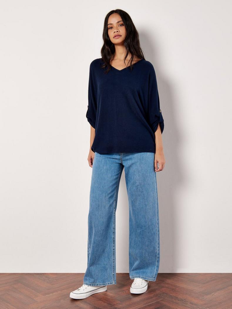 Combine comfort and style with this soft-touch top. In a figure-skimming fit that’s perfect for casual cosy days, it features a flattering V-neckline and rolled batwing sleeves.Team with skinny-fit jeans to create a balanced silhouette.